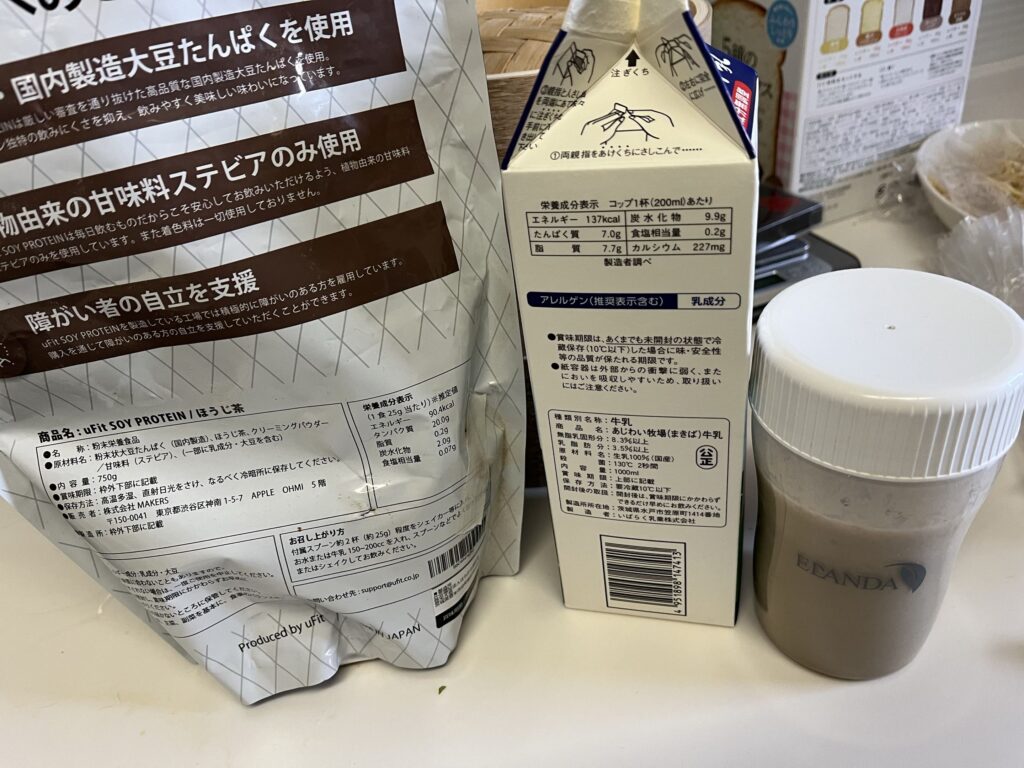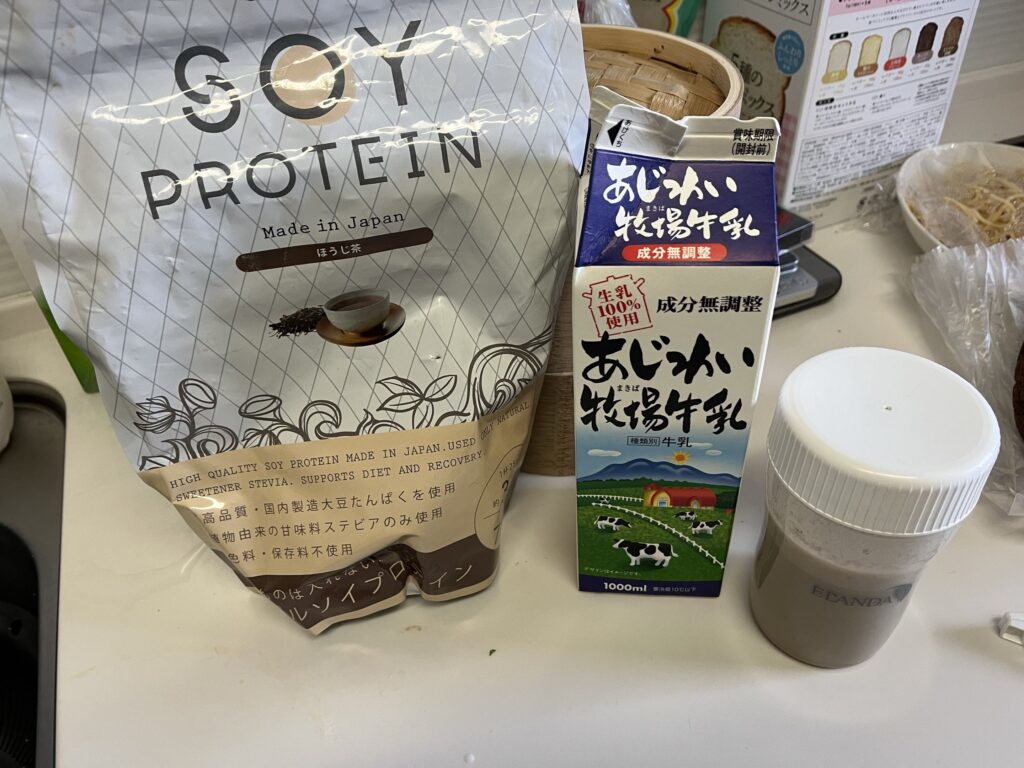 ソイプロテイン ほうじ茶味 水と牛乳100㏄でといて。